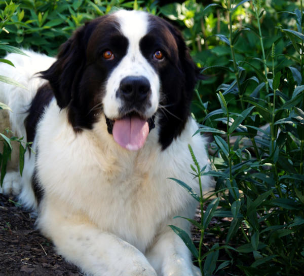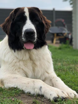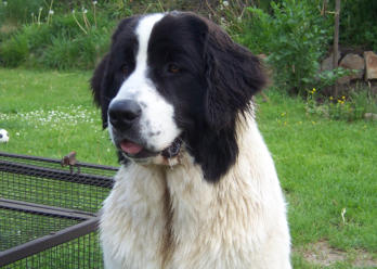Landseer-Hündin bei uns ein.