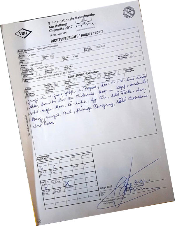 Fanny vom Promnitztal hat ihre Ergebnisse erhalten !