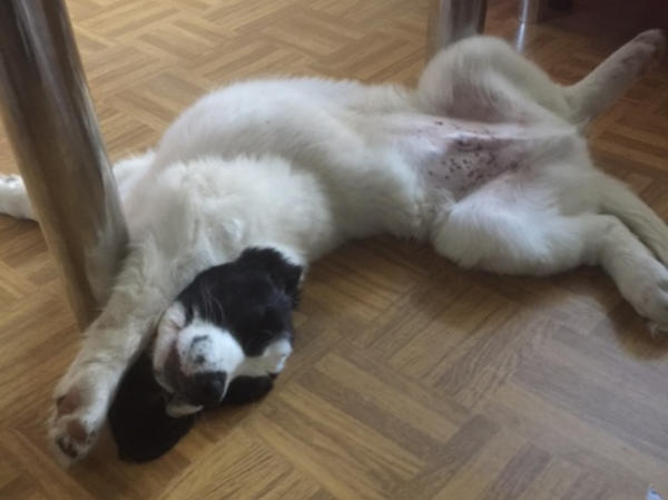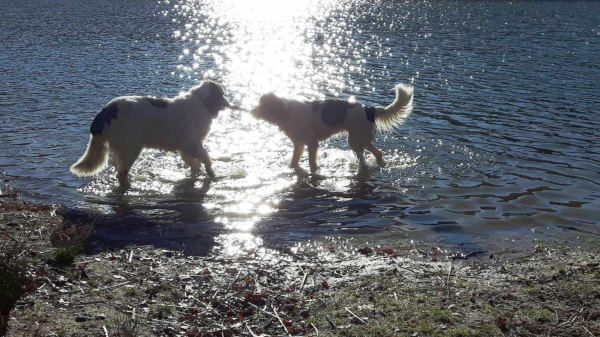 jetzt von der Pullerpause eine quietschfidele kleine Hündin im Maul mit herein...