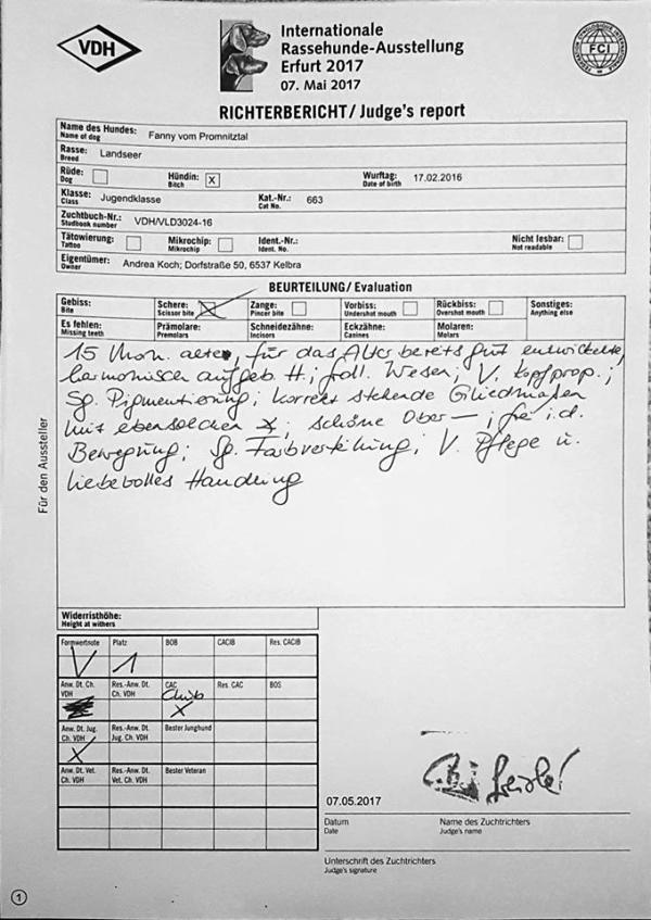 Fanny vom Promnitztal hat ihre Ergebnisse erhalten !