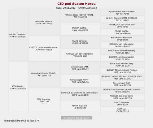 Unsere Gwendolin vom Rittergut wurde am 6. u. 7. Juli 2019 von Cid pod Svatou Horou gedeckt. Werte der Verpaarung: IK 0,00 und AVK 98,39